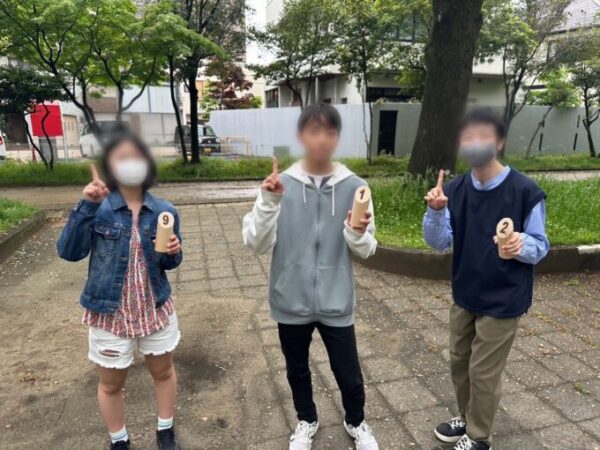 木製ピンや木の棒がコロコロ転がると生徒さんがサッと取りに行ったり、失敗しても「ドンマイ、ドンマイ」と声を掛け合い、楽しくみんなで遊べました。ちょうど50点にならないと25点に戻ってしまうので💦、「次はどんな作戦にいくか」、「本数狙いか1本をねらうか」など同じチームの子とコミュニケーションを取りながら遊べるのがモルックの本当によいところです🎵