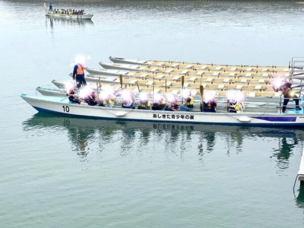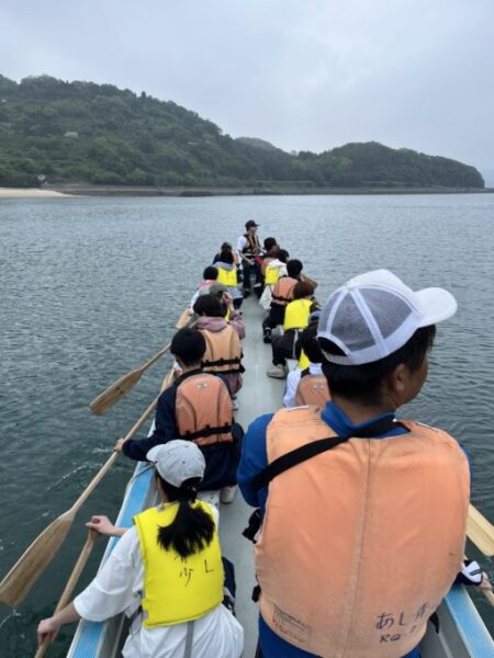 大人数で息を合わせて船をこぎます。