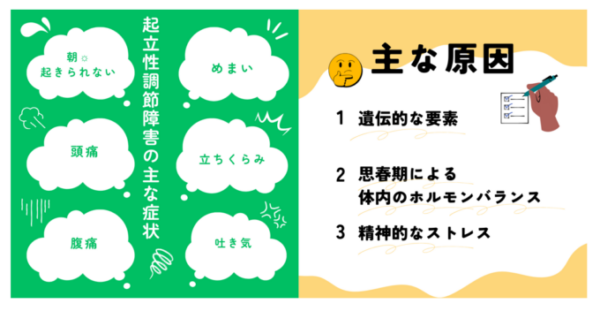 この病気はよく、なまけたり、さぼったりというような勘違いをされてしまうことが多いと言われていますが、実際には成長期の体の変化と自律神経の成長が追い付いていない病気なのです。