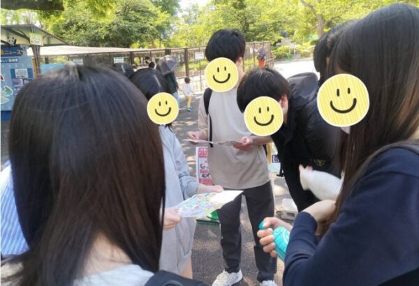 キャンパスでまずは簡単に自己紹介をして出発。楽しくお話をしながら動物園に向かいました。