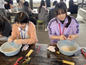 林間の勾玉&塗り箸作りは楽しかったけど筋肉痛になりました。頑張りました!