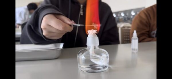 こんな感じで今では絶滅した?アルコールランプに金属板の上の乗せた金属を燃やして炎色反応を見ました!