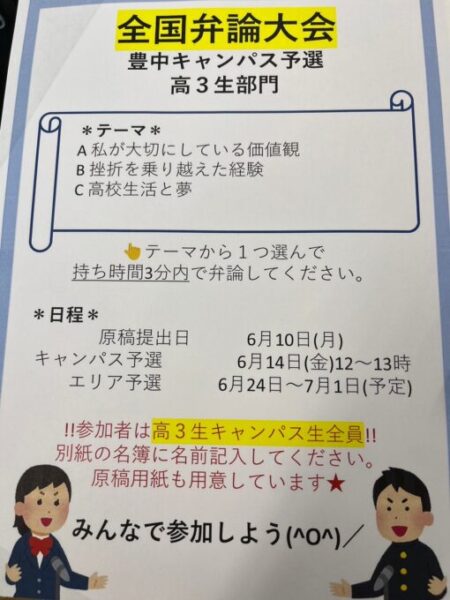 弁論大会高3部門がついに始まります、、、!!