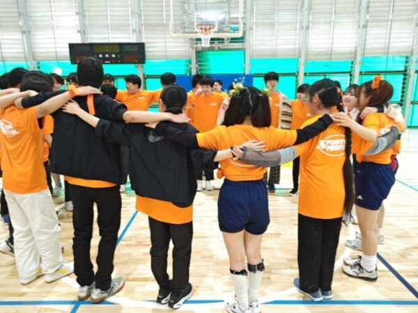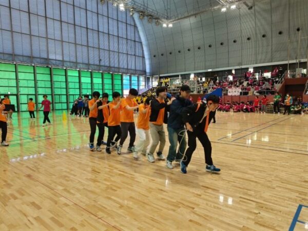 みんなで協力して各競技、頑張りました!!競技前にはみんなで円陣を組んで気合いを入れました!!