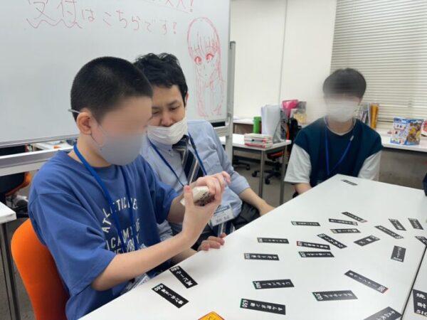 そのあとは「レロレロ酒場」というカードゲームで盛り上がりました!! 池田キャンパス長に発音のアドバイスをもらうA君🍀 みんなで楽しく過ごせました!!
