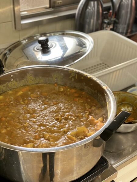 とても大きな鍋いっぱいのカレーですね!子どもたちもお腹一杯になったはずです♪