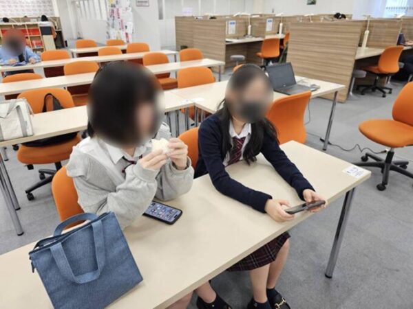 朝ごはんを食べている生徒もいれば、ちょっぴりゲームをしている生徒も。