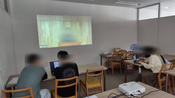 映像をみた直後から弁論の原稿作成に身が入る生徒たち!