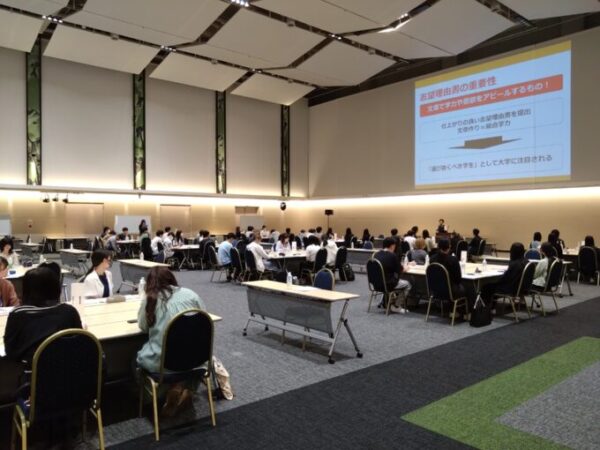 A:合宿に参加する人には、志望理由書の前段階のような「自己実現シート」という事前課題の提出が求められます。