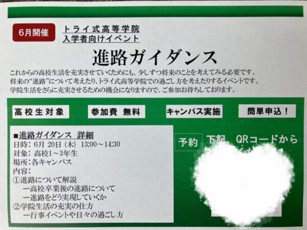 トライに入学して間もない生徒さんを中心にぜひ参加してほしいガイダンスのお知らせです👇