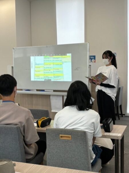 その後キャンパスでのHRではみんなの前で合宿の報告会をしてくれました。