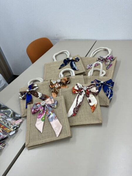 バックに好きな柄のリボンを作ってつけて🎵