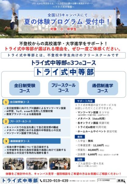 トライ式高等学院🌸中等部ホームページ:https://www.try-gakuin.com/freeschool/