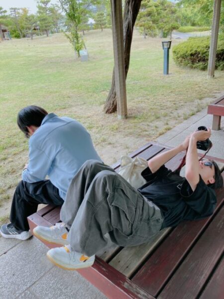 ↑少し蒸し暑い日だったので、四阿で休憩中🥤