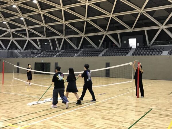 男子生徒が、キャンパス長の松本さんに、バドミントンの試合を🏸 申し込んでいたり✋