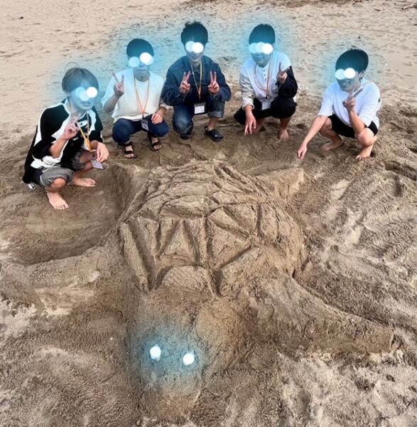 チームで協力して作ったサンドアート🐢
