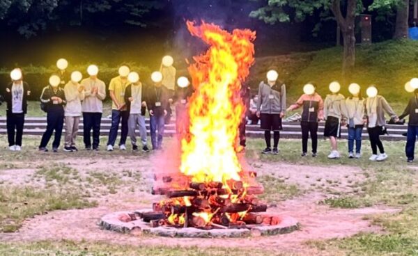日頃なかなか体験しないキャンプファイヤーや花火を楽しみました。職員による本気のダンスパフォーマンスも大いに盛り上がってくれました。