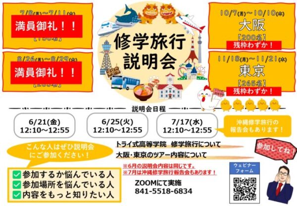 下記の日程で修学旅行の説明会が実施されます!
