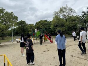 急遽、体育館付近の公園でドッジボールやケイドロ、ボール繋ぎや