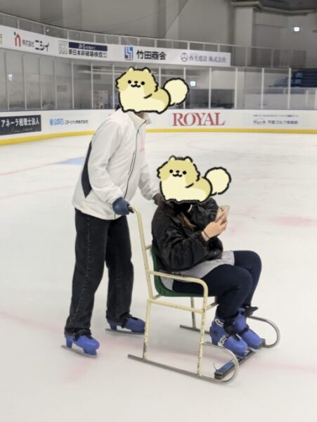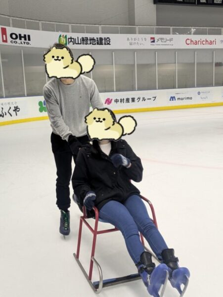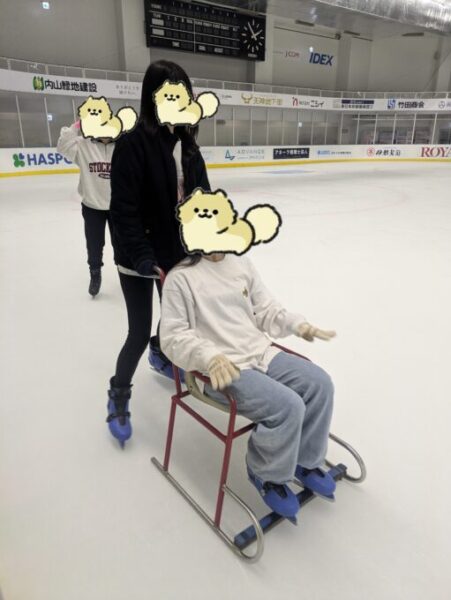 手をつないで滑ったり、椅子をレンタルして1周何秒で回りきれるか競い合ったり、 みんな笑顔で楽しんでいました😊