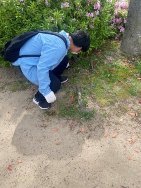 お弁当のごみや空き缶が特に多かったです💦キャンパスの近くの川沿いにはとてもきれいな桜が咲いているのでお花見をした人たちがごみを捨てていったのかな、、、と話しながらごみを拾いました!