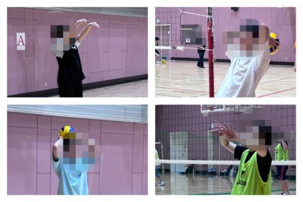 その後、レシーブ練習。まるで本格的な部活の練習のようでした!
