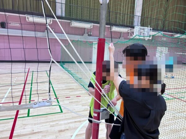 北千住キャンパスには高等学院バレー部に参加している生徒さんが2名います。ネットの準備も手早く、感心しました。