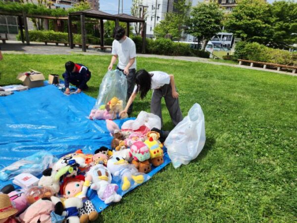 汗を流しながら支援物資を並べたり、ぬいぐるみを並べたりしていると、他のボランティアさんが水を持ってきてくれたり、日差しで休んだり、、、周りと協力していくボランティア活動に行く度に人の暖かさを感じます。