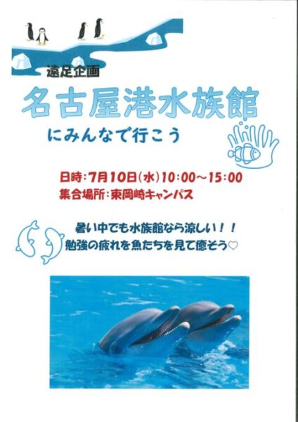 知立キャンパスと合同で【名古屋港水族館へ行こう!】という遠足企画があります🐠