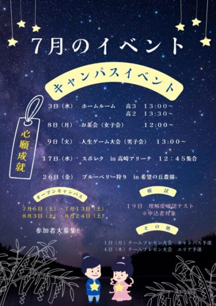 今月も、プレゼン大会やブルーベリー狩りをはじめ、たくさんのイベントがあります!
