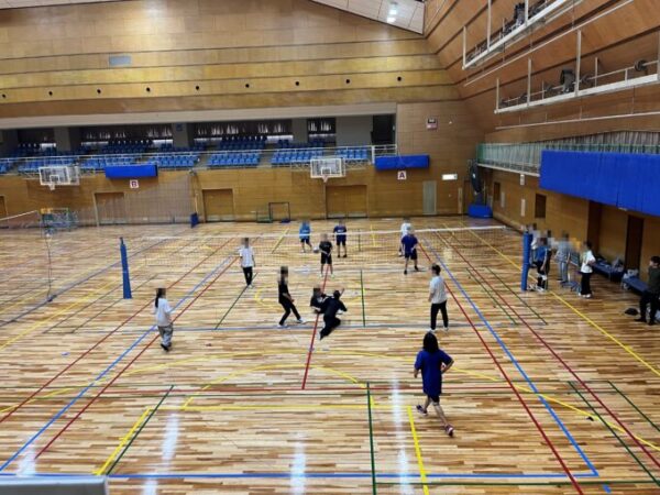前半は半面を使ってドッヂボールを、後半はネットを張ってバレーボールを楽しみました!