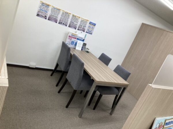 ご家庭との面談時や、生徒さんとお話しするときに、こちらでお話をお伺いします。壁で仕切られていますが圧迫感はないので、安心してくださいね😌🫧