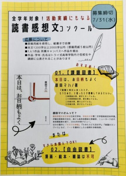 そんな生徒の皆さん、涼しい部屋の中で本を読んで、読書感想文コンクールに出てみませんか?