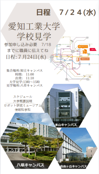 7/24(水) 愛知工業大学見学 11:00~16:00