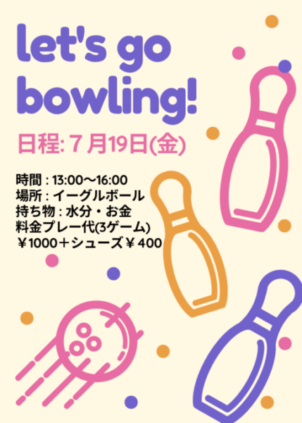 7/19(金) ボーリング大会 13:00~16:00