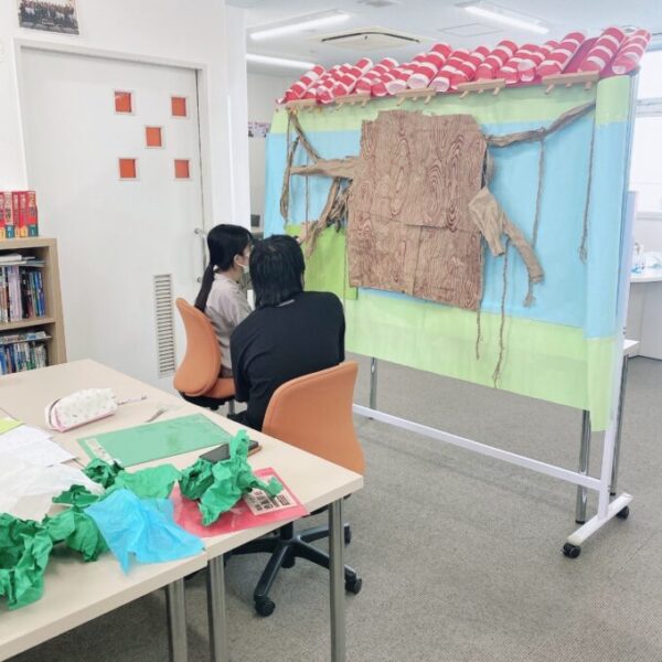 沖縄修学旅行で来ている生徒さんたちとの、明日のパーティに向け、小禄キャンパスでは飾りつけの準備をしています。