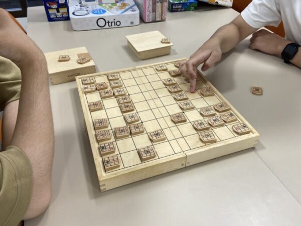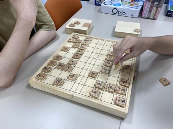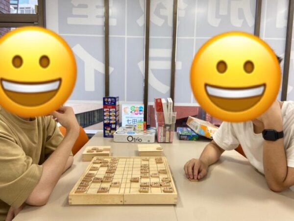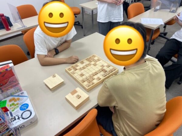 二人の生徒が将棋で激戦中!