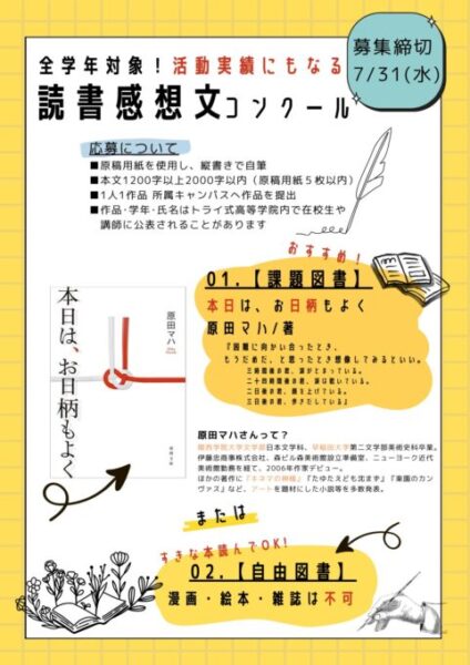 本日は、トライ式高等学院主催の読書感想文コンクール📖のご案内です。