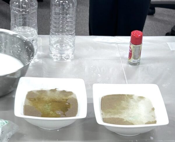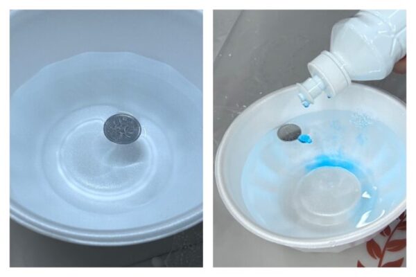 加えて一円玉を使った実験も。一円玉を水面に浮かべるのがなかなか難しいのですが、器用な生徒があっさり浮かべていました😳👏