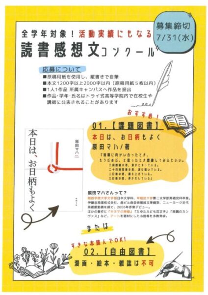 トライでは、毎年読書感想文コンクールを行っていますが、