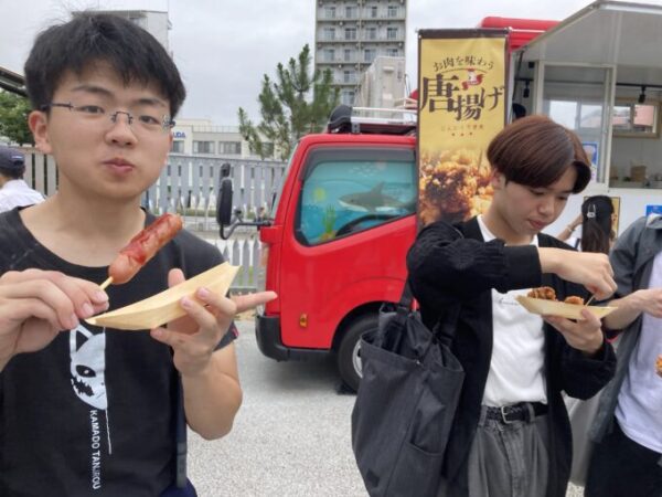 美味しそうな唐揚げを分け合い遠足気分です♡