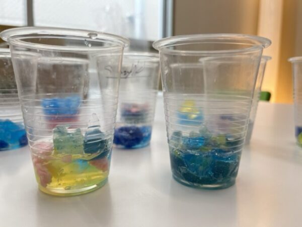 透明の石鹸を切って色付けをして、混ぜて、固めて、、、、