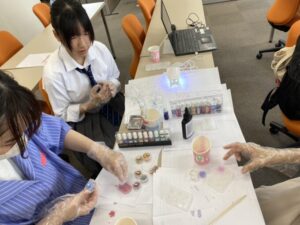 レジン大得意のYさん(画像右)が、初挑戦のAさん・経験者のTさんに教えています!