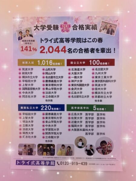 トライ式高等学院ではお子様の体調や目標に合わせて、登校頻度のご相談や学習サポートをご提案できます🌸✨