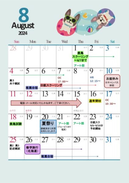 8月は、とにかく各連携校の大事なスケジュールが詰まっております!
