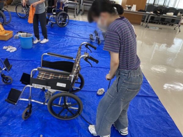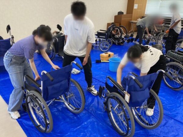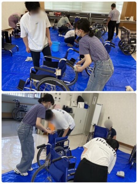 7月24日に3度目となる車椅子メンテナンスのボランティアを行いました✨️前回に引き続き、車椅子の清掃やタイヤへの空気入れなどを行いました。