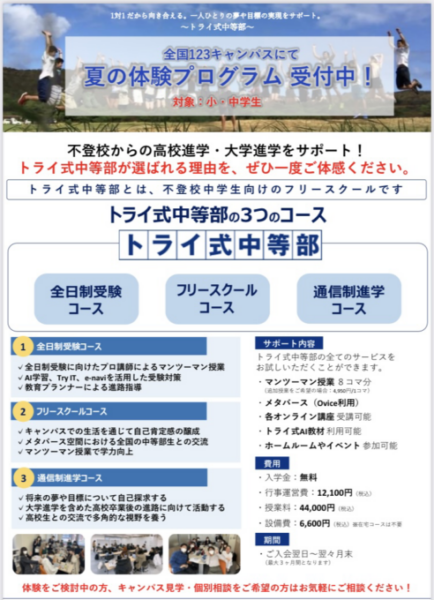 トライでは、そんな皆さんのために、「夏の体験コース」を用意しています!
