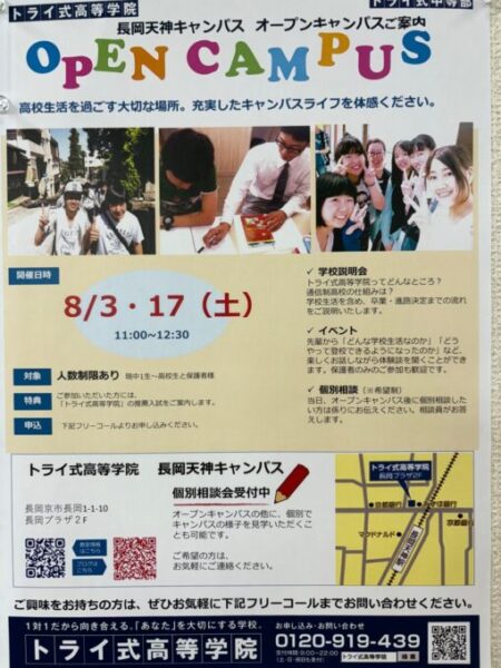 次回のオープンキャンパスは8/17(土)11:00~です。お盆明けになりますので、