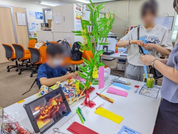 まずは短冊に願い事を書いて、笹に吊るしていきます🎋