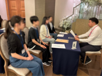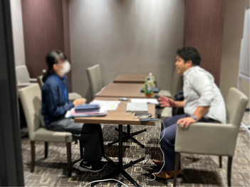 面接での対応力が身についてきたところで、トライの本部からいらっしゃった先生方に面接ブースで一人ずつ模擬面接を実施していただきました🏫
